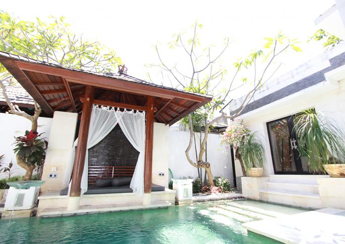 Comparing to another villa, the villa has small pool and 1 bedroom, living & dining room on small site.